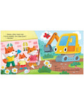 Добрая сказка с яркими картинками расскажет малышам, как работает экскаватор, для чего нужен ковш и какие еще машины трудятся на стройке.